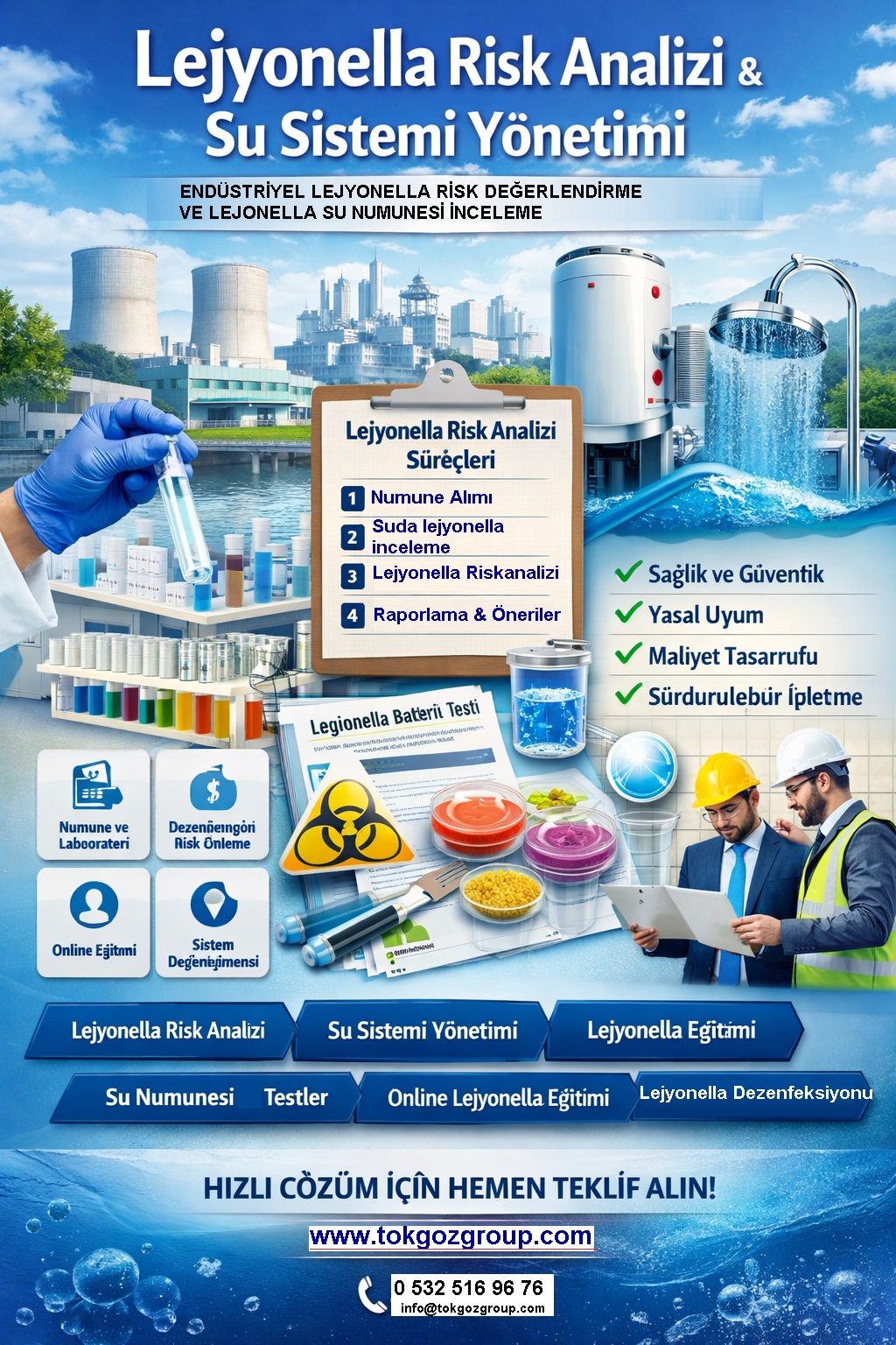 Lejyonella, su sistemlerinde üreyebilen ve özellikle soğutma kuleleri, sıcak su sistemleri ve duş başlıkları gibi noktalarda ciddi sağlık riskleri oluşturabilen bir bakteri türüdür. İşletmeler için bu riskin yönetimi, hem yasal uyum hem de çalışan sağlığı açısından kritik bir adımdır.