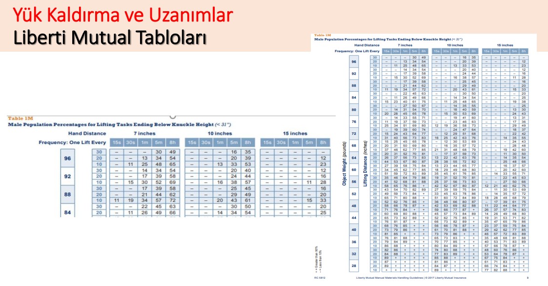 📌 Liberty Mutual Tabloları – Ergonomi & Elle Taşıma Ergonomi Risk Analizi